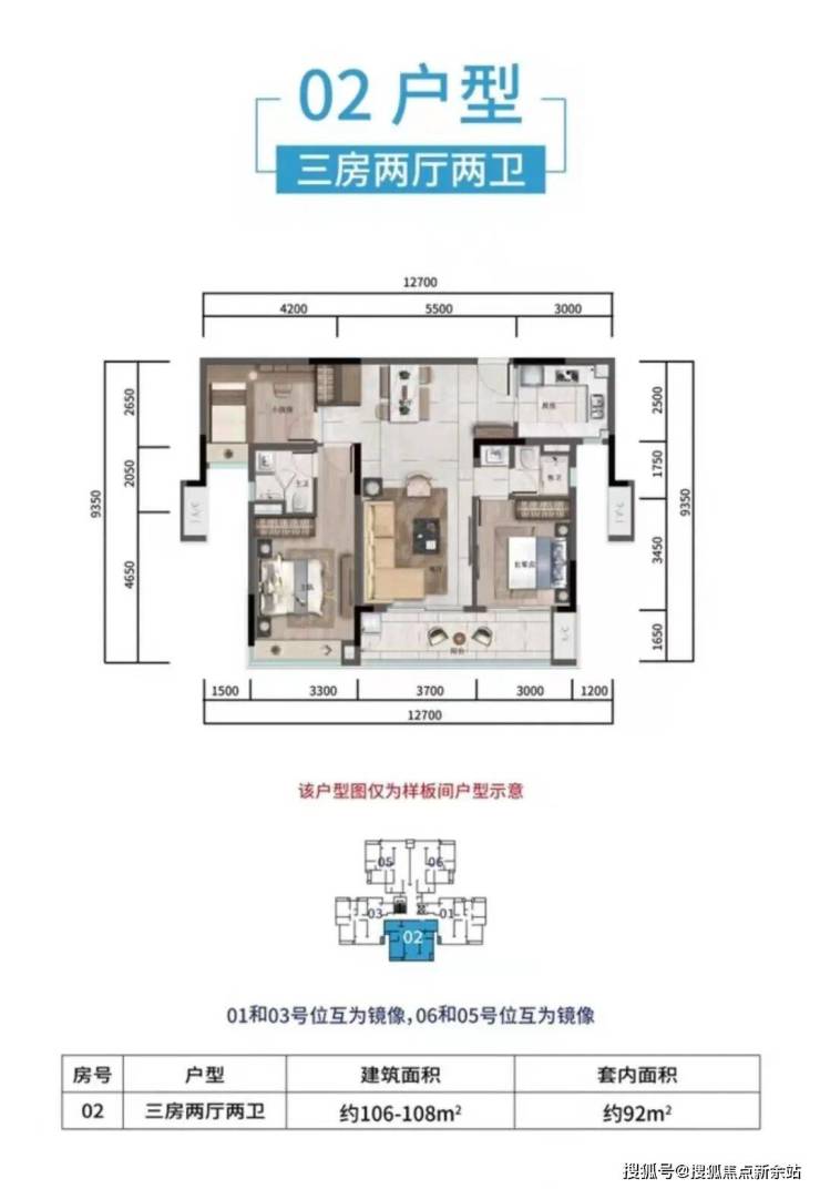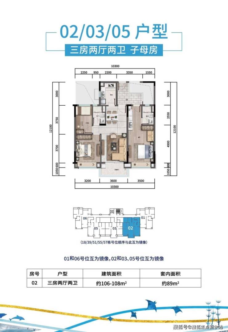 ①T5F户型 108-110㎡ 三房两厅两卫