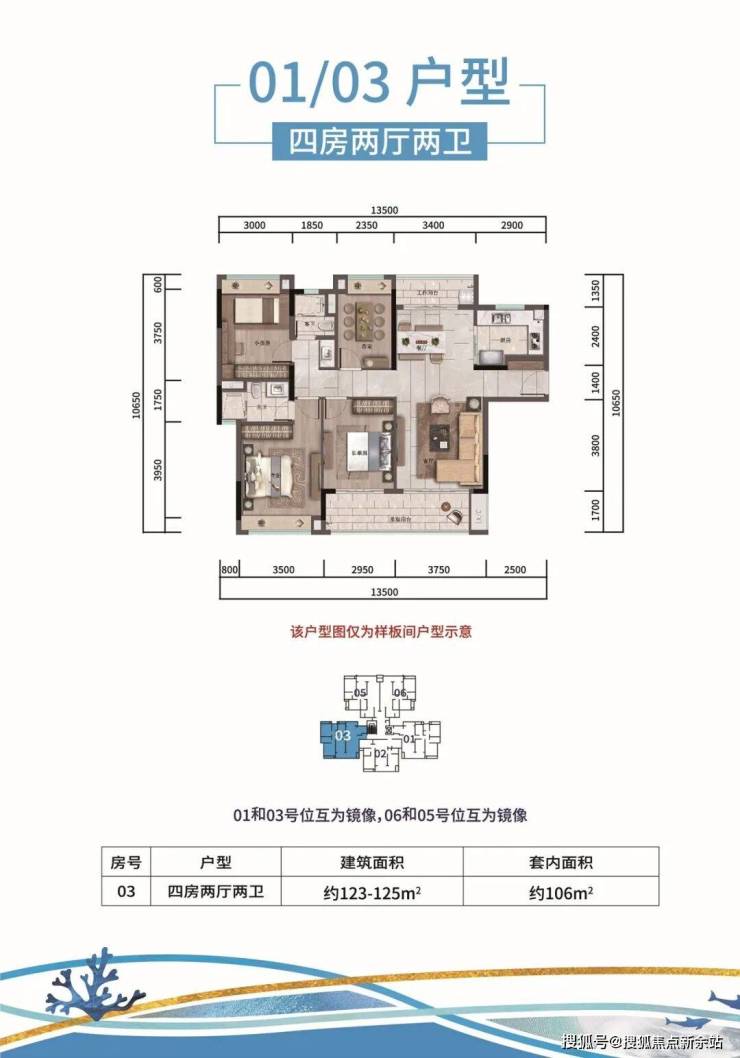 【户型面积】:约106-140㎡三、四房