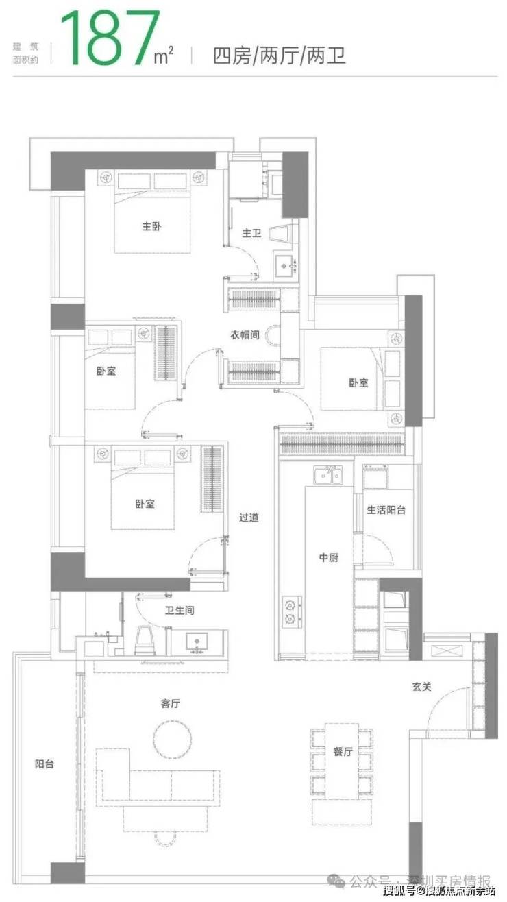 建面约187m² 四房两厅两卫
