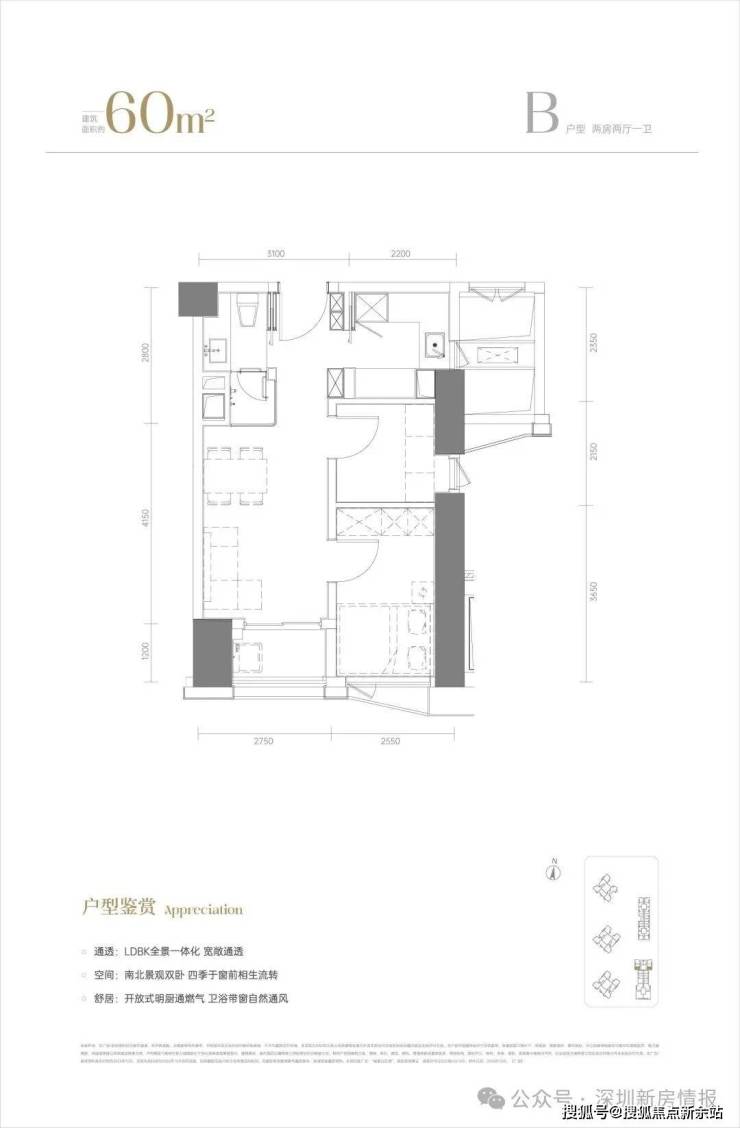 横向创新户型,超宽向阳尺度,吸纳阳光新风