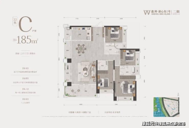 22栋C户型:建面约185㎡,4房2厅3卫