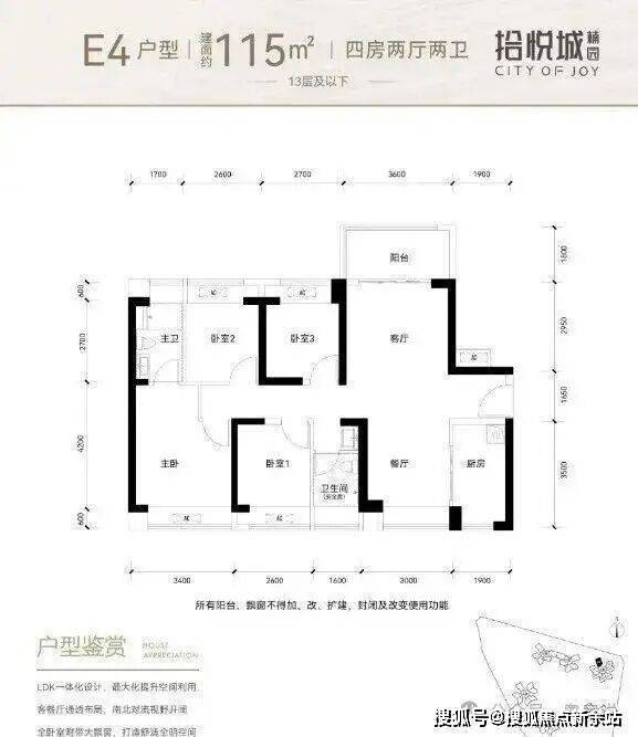 其中115㎡与126㎡外形结构与内部功能间布局基本一致,126㎡户型可看作是115㎡户型的放大版,都是竖厅、动静分区的,居住舒适性、实用性、通透性、静溢性各方面都比较好。