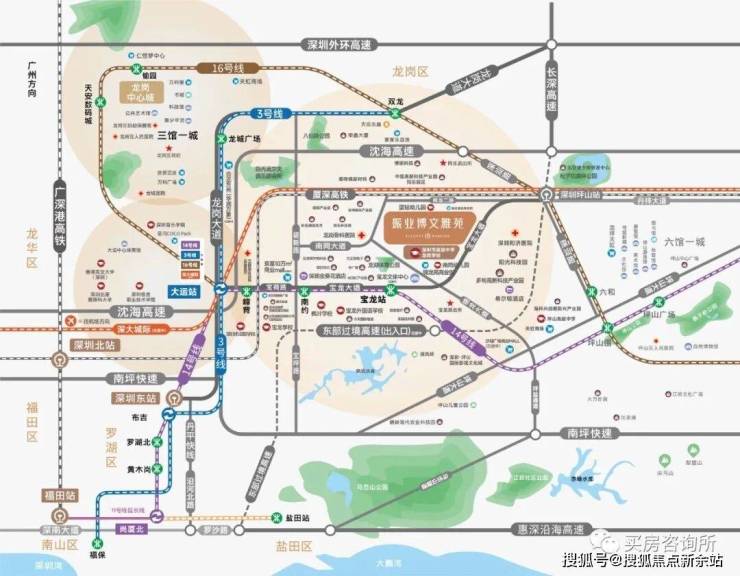 交通方面,地铁14号线是一条福田—罗湖—龙岗—坪山的快线,未来从宝龙站出发,3站即达大运中心,9站可以到罗湖、10站抵达福田。以及项目距离坪山高铁站仅2公里距离