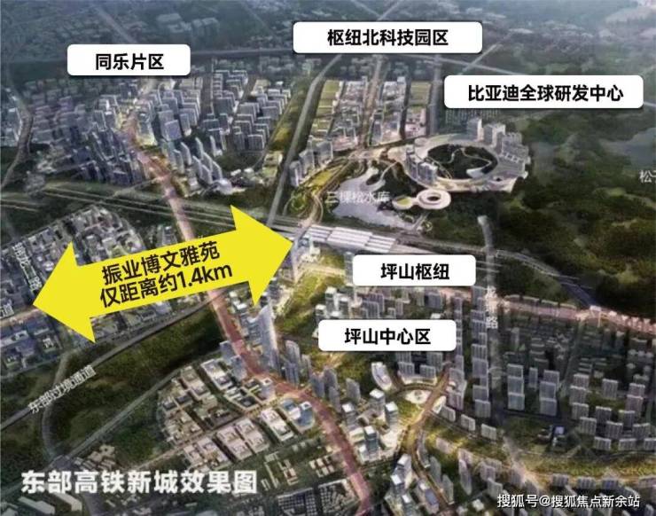 ▲位于坪山高铁站旁的比亚迪全球研发中心/鸟瞰效果图