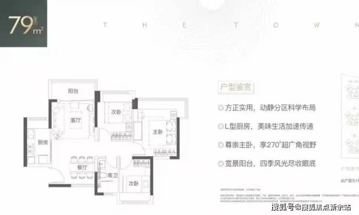 79㎡的3房2厅1卫,设计的是竖厅南北通透格局,客厅3.6米开间,LDKB一体化设计,动静分区,四开间朝南,主卧270°超广角视野,L型厨房,卫生间干湿分离,得房率:76.33%(不含赠送),东南朝向。