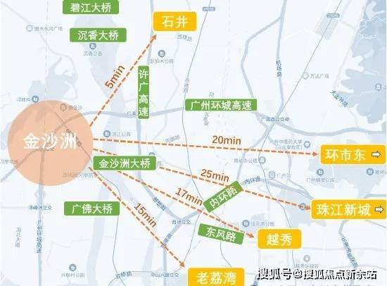 金沙洲的区位,其实都还行,横跨广州白云区和佛山南海区,临近荔湾,和广州的主城区相隔不远,尤其是广钢新城、白鹅潭、白云新城这些,对于不少人来看,这样的距离,是符合通勤距离的。