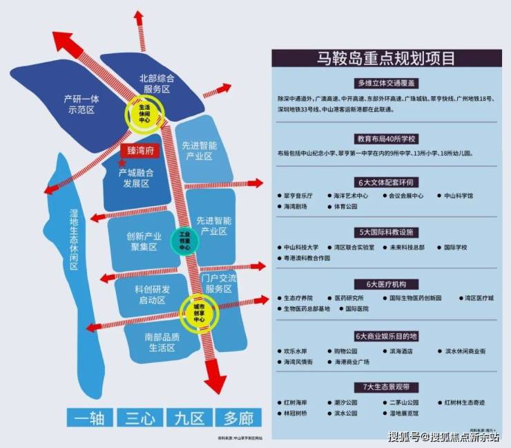 马鞍岛扼守大湾区交通枢纽位置,坐拥“一桥一港双站三轨道四快线”海陆空立体交通路网,深中通道(已开通)约30分钟迅达前海(信息来源:南方+),区域内还汇聚了广澳高速、中开高速、东部外环高速、广珠城轨、翠亨快线等湾区重大交通设施,更有广州地铁18号线延长线(在建中)、深圳地铁33号线(规划中)在此设站联通,完美实现大湾区核芯区域的全面交往互通。