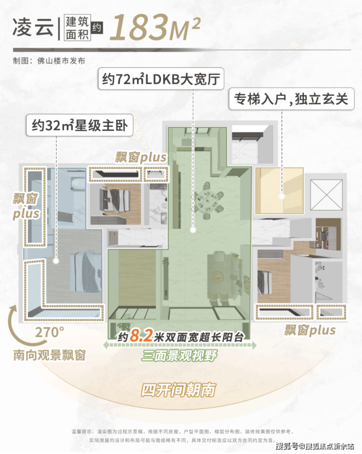另一方面,本次推出的「凌云」建面约183㎡产品,是佛山新规后的大平层代表作,代表着更高阶的生活享受。