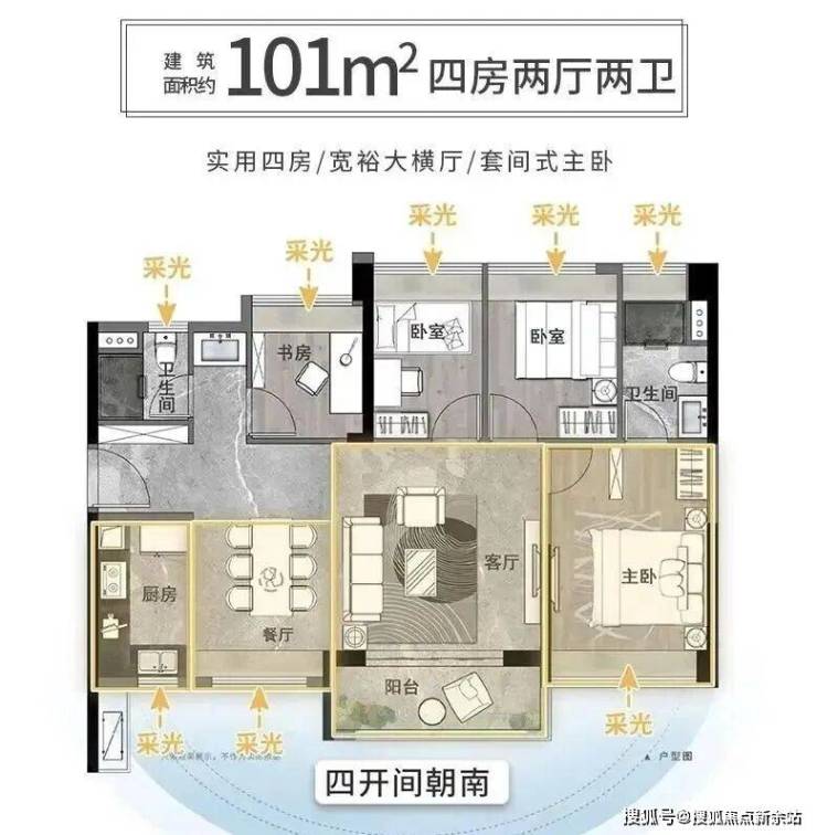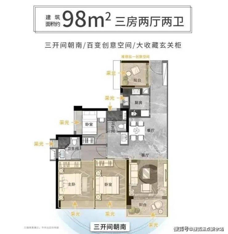 【高层户型鉴赏-超95%南向户型设计,高拓展高赠送】