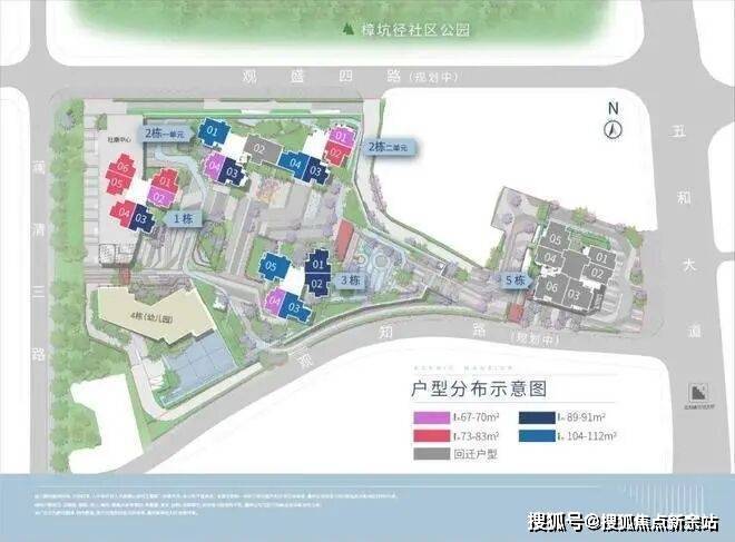 楼栋规划:1栋、2栋、3栋、5栋为住宅,4栋为幼儿园