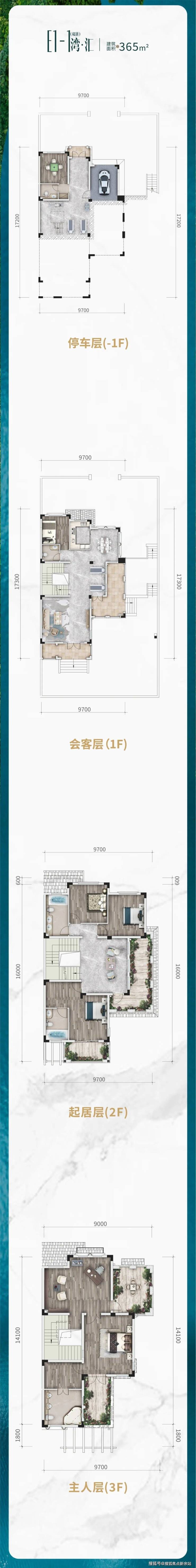 别墅户型:313-365㎡联排/双拼(415-560㎡独栋别墅)