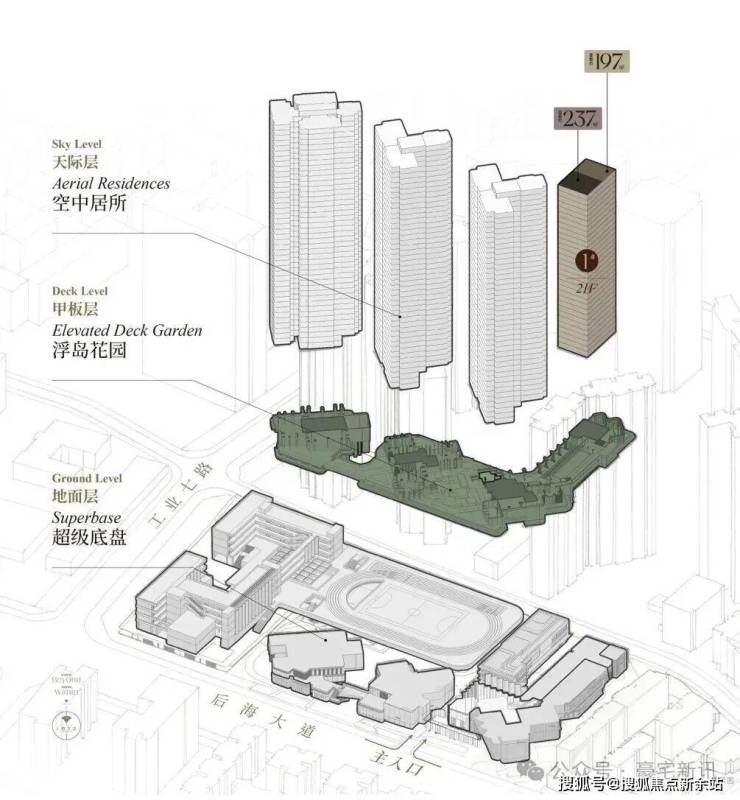 项目由梁黄顾建筑事务所赵新宇、承迹景观王轶、LSD 葛亚曦等多位国际大师联袂设计,采用「浮岛甲板」的创新规划理念: