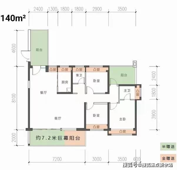 另外这个楼盘的户型设计特点是摒除了板楼公摊面积大的问题,每个户型赠送面积都非常大,最小95平就赠送有23平,使用率能达到95%以上,且户户都是大阳台,最小95平阳台都能达到6.6米,最大140平的阳台能达到7.2米。而且每个户型都是都是湾区唯二的落地窗设计(另外一个落地窗设计的楼盘是锦绣壹号)。