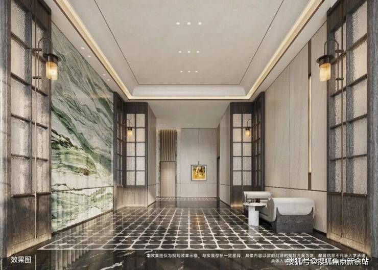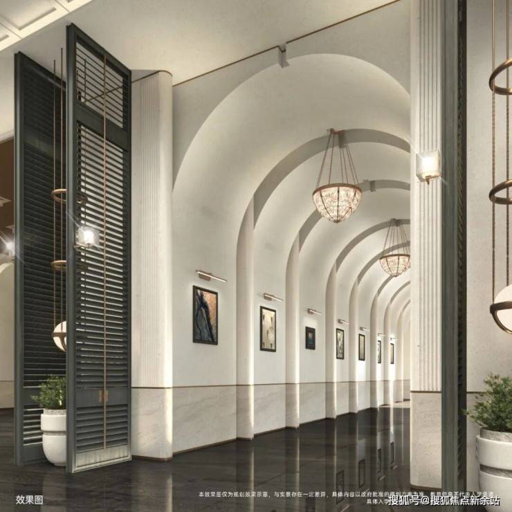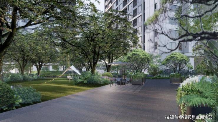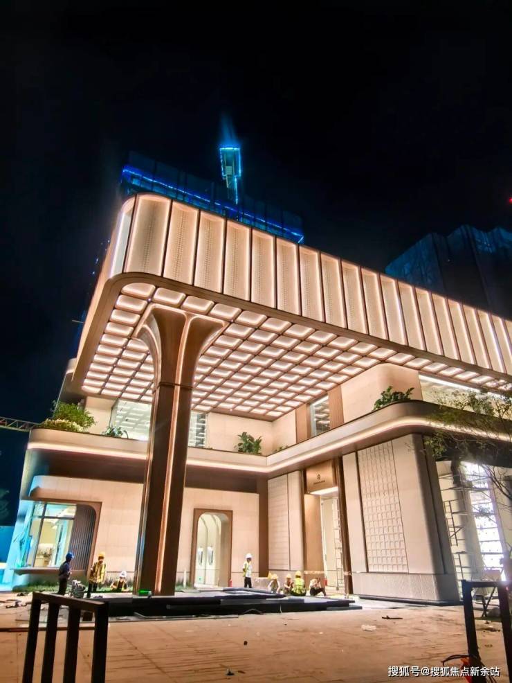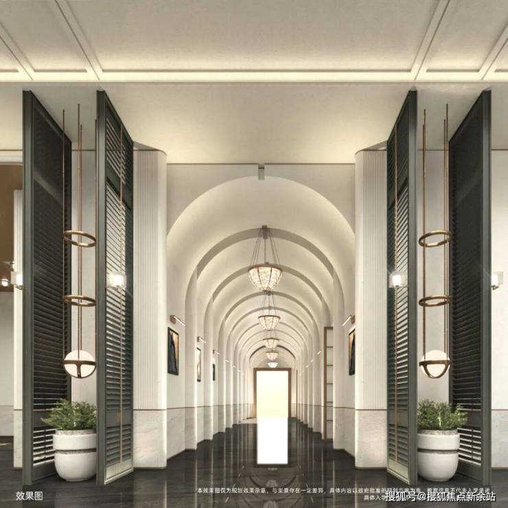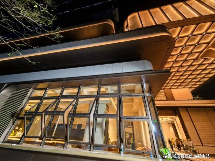 越秀星科源启1栋侧门仿深圳湾安仕达酒店,香槟金金属格栅,线条流畅有张力。镂空设计减轻挑檐压迫感,阳光透过形成斑驳光影,增添艺术氛围。小区正门尚未见效果图,留待想象。