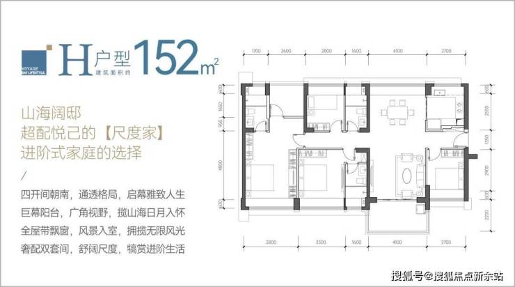 152㎡五房三卫:总价952-1026万,双主卧套间设计。客厅开间4.1米,主卧20.52㎡,得房率约92.01%。