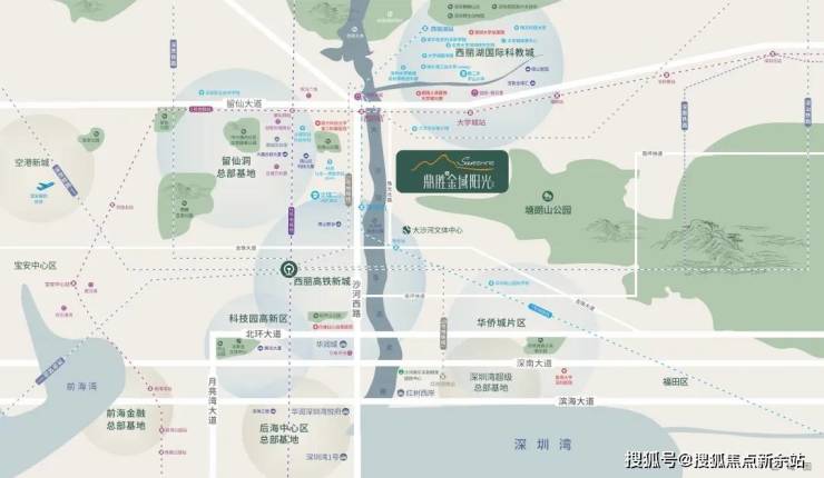 金域阳光家园项目邻近留仙洞总部基地、西丽湖国际科教城、西丽高铁新城三大重磅区域,走产学研一体化发展模式,比深超总、高新园更加先进,同时在西丽高铁站(建设中)这座超越深圳北站的超级枢纽加持下,作为深圳经济增长的强劲“新引擎”,未来发展释能不容小觑。