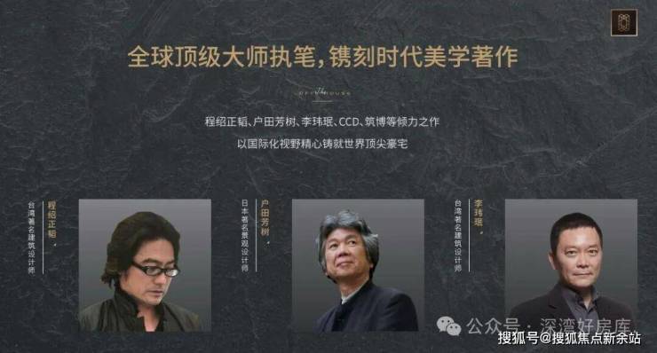 程绍正韬、户田芳树、李玮珉、CCD、筑博等倾力之作,以国际化视野精心铸就顶尖豪宅。