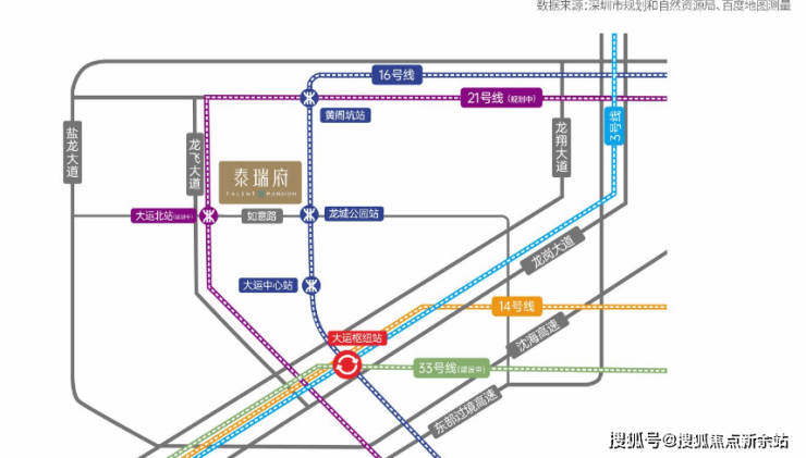交通配套:与在建的深惠城际【大运北站】及16号地铁线【龙城公园站】距离约600米,2站可换乘交通枢纽“大运站”,换乘3/14/16/21号地铁线,半个小时可到福田,40分钟可到南山,大大缩短大运新城到市区的通勤时间。
