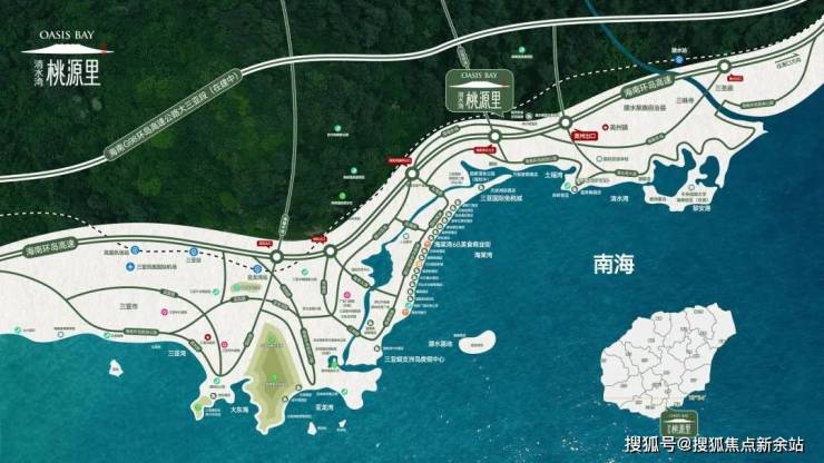 「国家海岸 25公里旅居度假天堂」海棠湾,国家规划打造的世界级度假湾区,是国际化的一站式旅游目的地,立足南海面向国际的旅游消费中心,立足三亚辐射南部省域的区域性服务中心• 半小时度假生活圈:紧邻G98海南环岛高速,距离清水湾旅游度假区5公里,距离海棠湾约15公里。• 世界级度假资源:高端酒店集群,周边汇聚医疗配套和康养生活资源,近揽三亚国际免税城、亚特兰蒂斯水上乐园、国际游艇港等资源,乐享缤纷度假体验