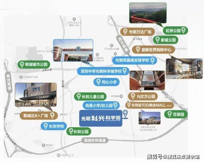 教育/居住配套:配建6万㎡精装居所,400米内两大保障房小区提供超1万套租赁房源。项目西侧毗邻尚美小学,2公里内覆盖深圳中学光明科学城学校、光明凤凰城实验学校、长圳学校、同心小学等多所优质学校