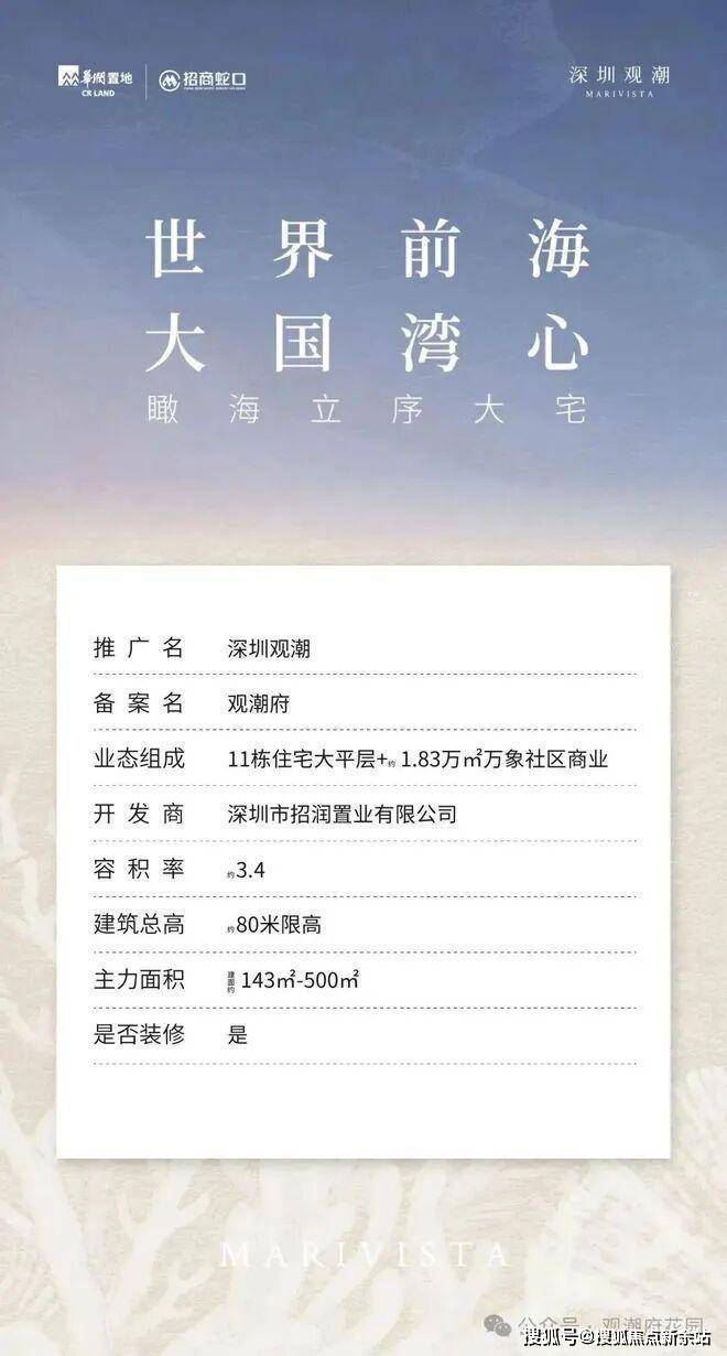 2025年8月土拍新晋地王→宝安中心区南街坊头排海景【观潮府】将于3月底入市!2027年底项目即可交付!首推5-6-7单元三栋楼182套143-168-190-254-265㎡,使用率约100%新国标产品!3梯3户及2梯2户梯入户!东南看海景为主,真正的与时间抢跑!