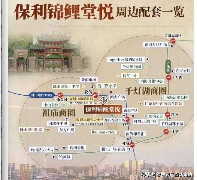 保利锦鲤堂悦位于佛山市禅城区文化北路与鲤鱼沙道交叉口,与佛山地铁三号线叠滘站直线距离仅 300 多米。项目坐落于禅桂交界的城北板块,紧邻祖庙千灯湖商圈,尽享祖庙千灯湖双芯的成熟配套与发展红利,地理位置得天独厚,发展潜力巨大。