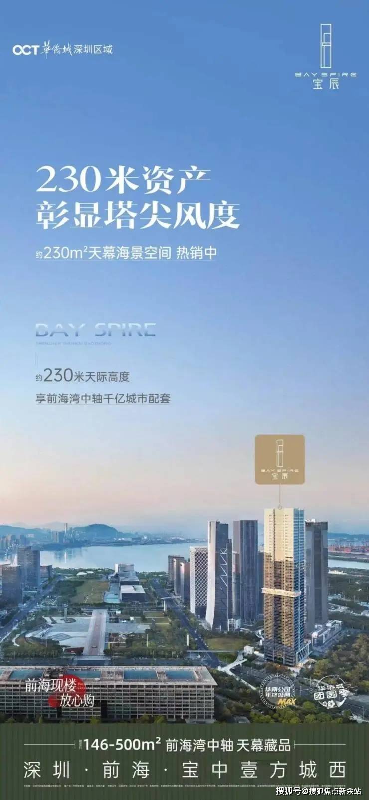 华侨城宝辰总高230米,为宝中最高楼;项目52层,分为中区、高区、超高区,6层起卖,11、39F为避难层,25-26F为空中会所,28F为空中大堂。除了空中大堂项目还有地下入库大堂+首层大堂,一共三重大堂。