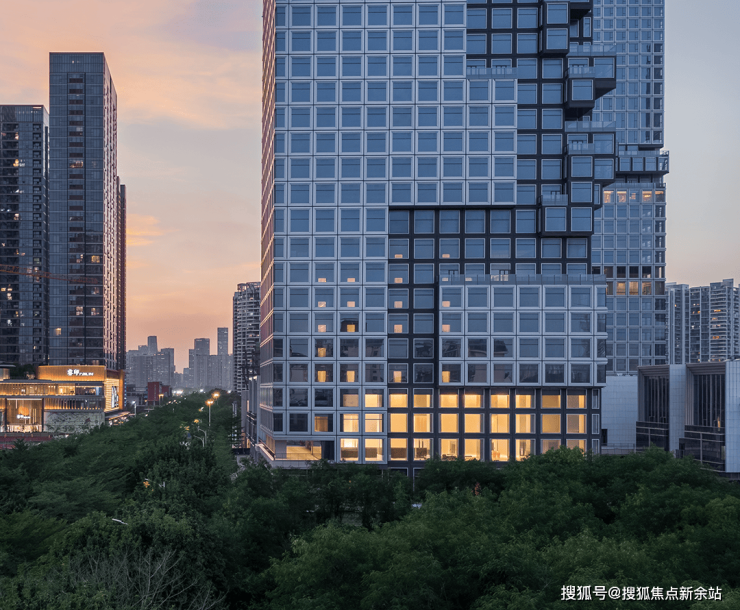 这些单元在立面构图中有序排布、叠合与穿插,形成既整体统一又富有变化的韵律节奏,建筑立面形态于理性秩序中诞生诗意律动。