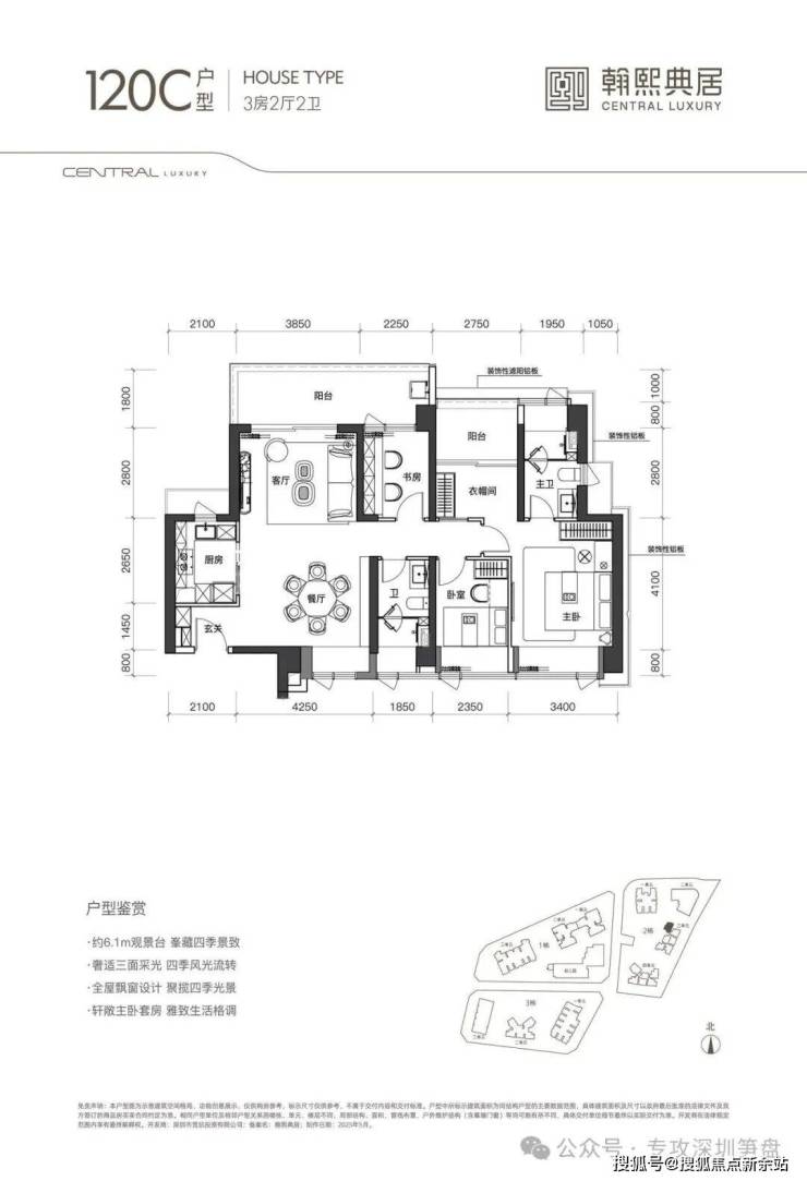 120㎡4房2卫:横厅/竖厅双选择,横厅6米开间,四卧室均超9㎡,可灵活改造为儿童房、书房,部分房源南北通透,直面深大校园景观,折后总价约1038万起。