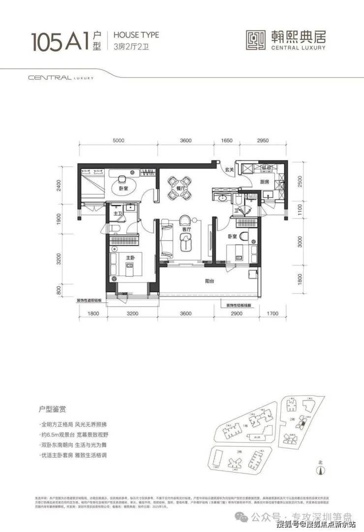 105㎡3房2卫:竖厅双龙抱珠/经典LDKB双布局,3.6米客厅开间,6.5米宽景阳台,三卧室均带飘窗,主卧套房设计,U型厨房动线流畅,公卫三段式分离,是改善入门的优选,折后总价约894万起,单价8.5万起。