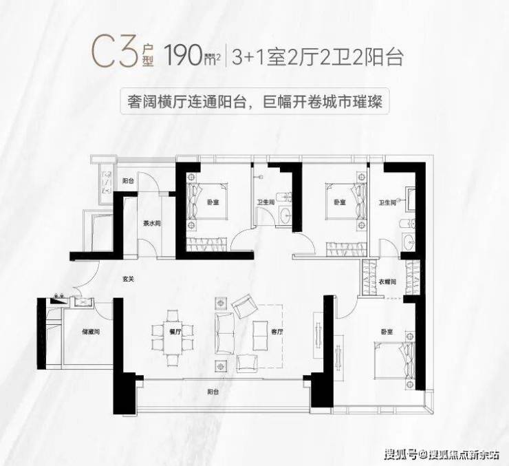 本期推售的约131-190㎡2-4房,70年产权,户户带阳台,拥有3.3m超舒适层高。室内公区、样板房均由CCD香港郑中设计事务所设计,将高级定制融入每一寸居住空间。