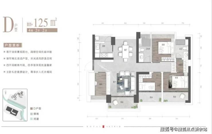 低居住密度,南临曲水成就风水好宅,水岸蜿蜒曲水,水以曲为上,而非直水,聚气效果佳,入住人气两旺。