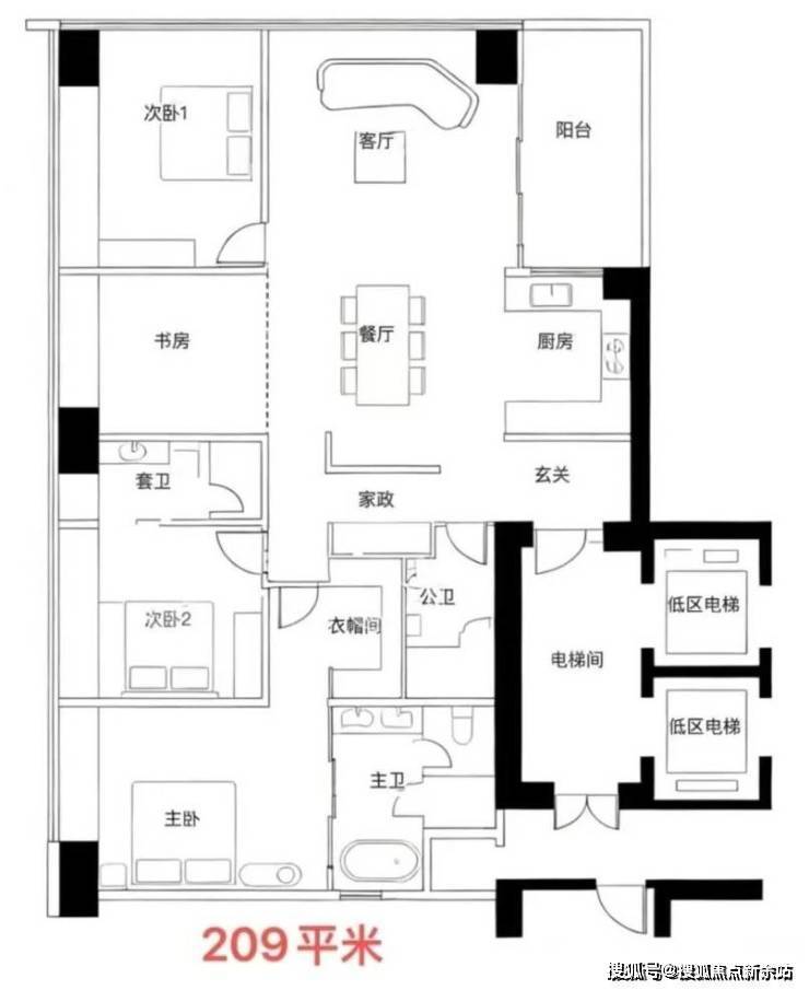 空间配置:4+1房五卫,家庭厅+家政套间,独立电梯厅入户