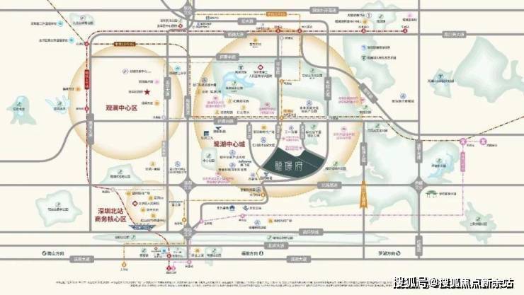 鹏瑞鹭璟府,位于龙华区观湖街道五和大道与澜清一路交汇处,地处鹭湖新城核心板块,紧邻观澜高新园区。该片区被定位为“科技行政文化核”,与深圳北站商务区共同构成龙华区“双核中心”,是龙华区打造“数字龙华,都市核心”的重要载体。