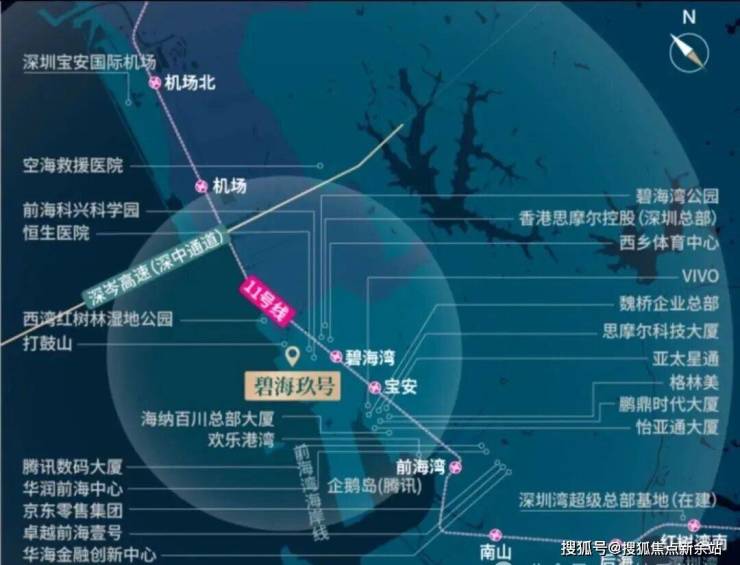 紧邻地铁11号线碧海湾站(约600m),1站机场、2站前海湾、4站后海、6站福田。