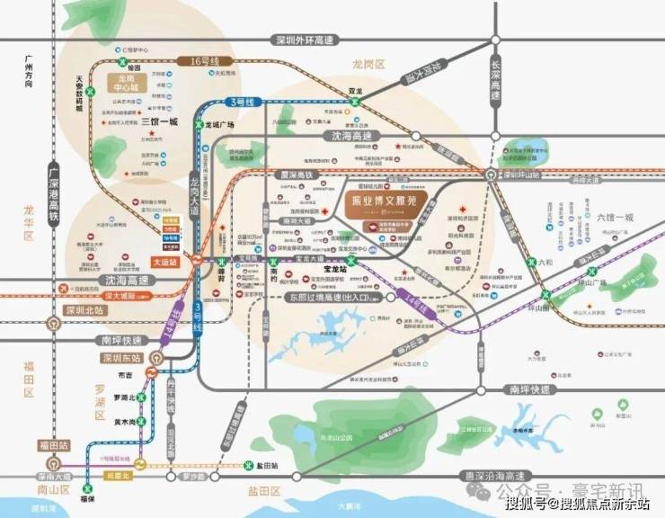 16号线坪山站 :坪山站升级“坪山综合交通枢纽”,16号线、高铁、深大城际(宝安机场——坪山,在建)三轨交汇;