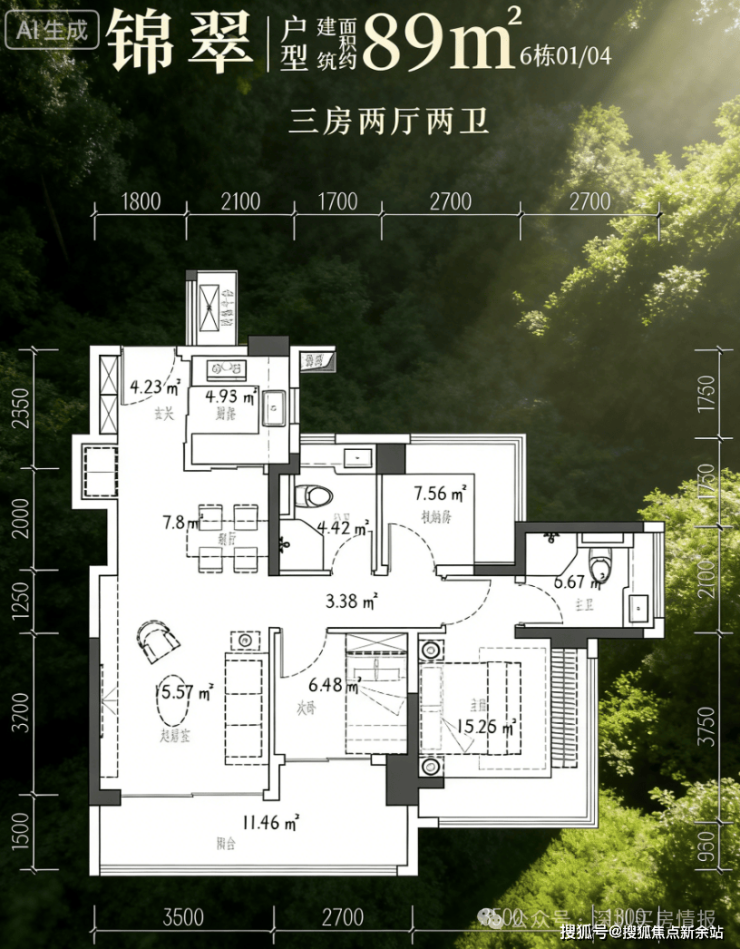 项目主打建面约 89-130㎡精装 3-4 房,全系遵循大面宽、南向采光、动静分区设计,搭配 270° 无柱转角飘窗与超大景观阳台,得房率高达 97.47%-104.06%,空间实用性拉满。