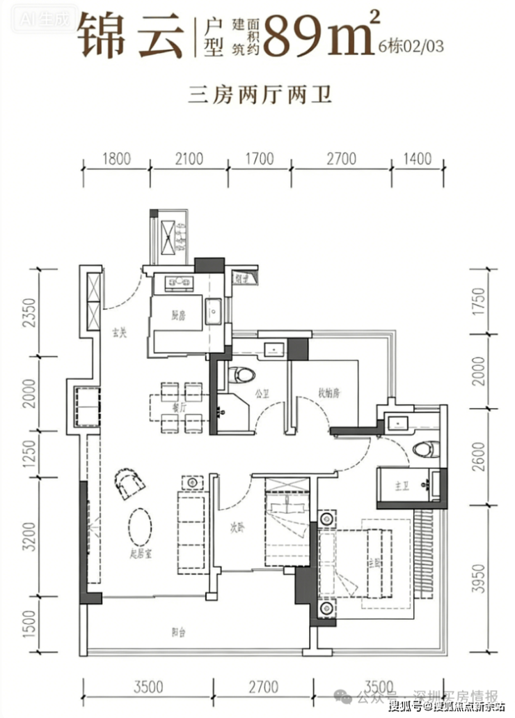 :经典竖厅格局,3.5 米客厅开间,LDKB 一体化设计,三开间朝南,主卧 + 次卧带转角飘窗,约 11.46㎡大阳台连通客厅与次卧,折后总价 364 万起,刚需上车优选。