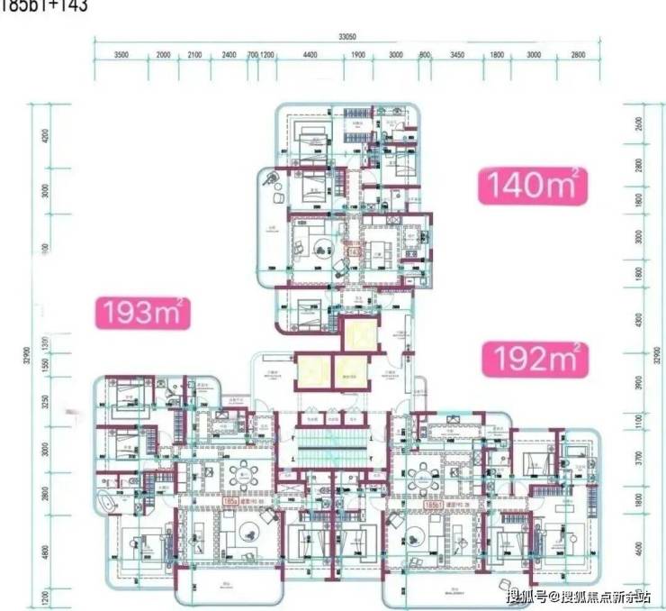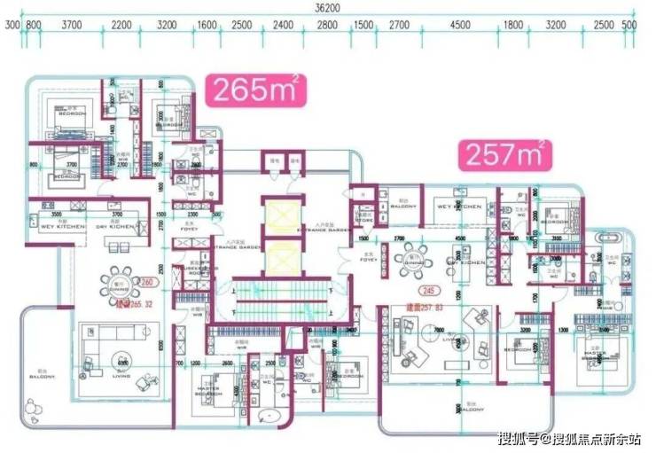 253–332㎡家族平层:2T2板楼设计,独立入户,双主卧套房均带海景卫浴,视野无遮挡,定位为顶奢客群。