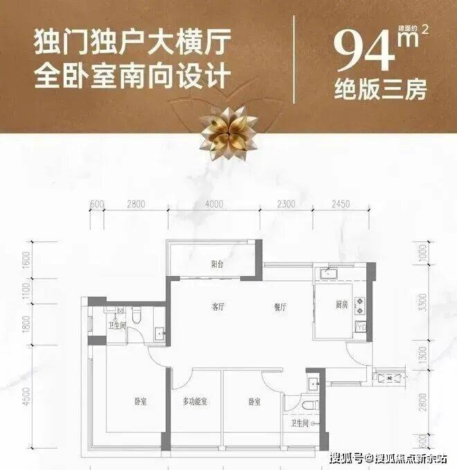 约94㎡三房两卫 | 奢阔横厅范本【折后单价约4.45-4.64万,折后总价约420-438万】(仅限开盘当天)• 独门独户,方正横厅,南北通透,对望泳池;• 空间感远超新规,曾经开盘即售罄,珈誉大城最后43套,绝版!