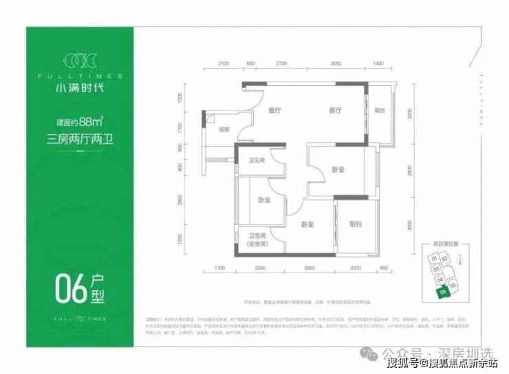 建面约88㎡ ▷3房2厅2卫◁