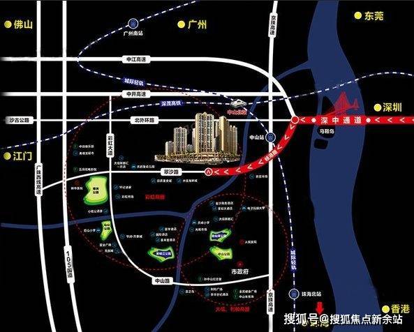 经北外环直达港口高速出入口 转中江高速接驳深中通道