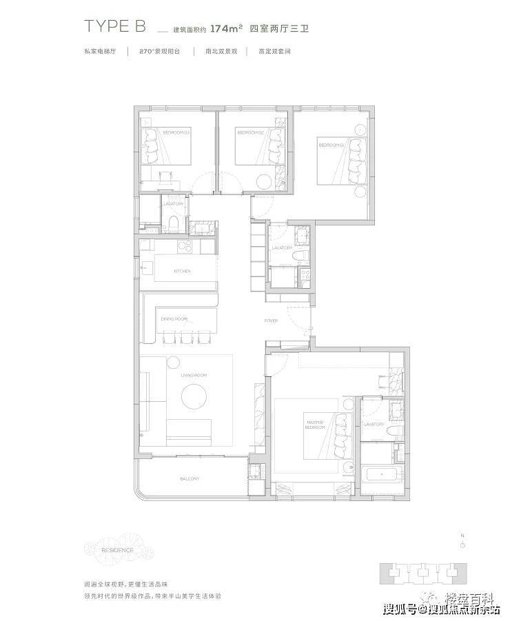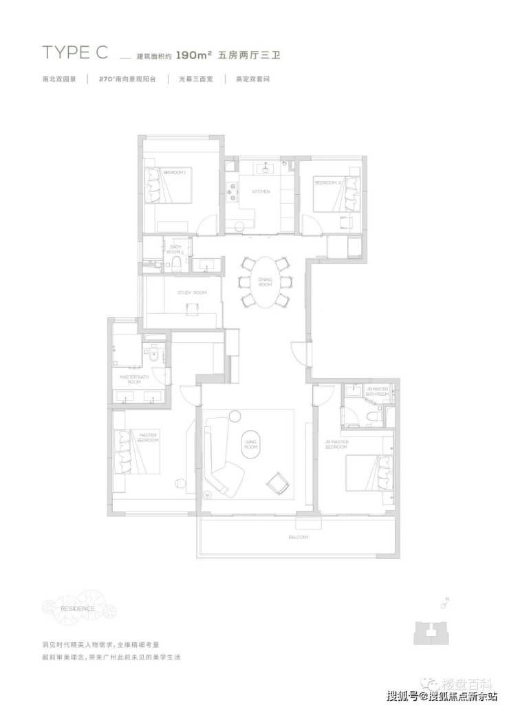 【户型面积】:145㎡三房、174㎡四房、190-315㎡五房