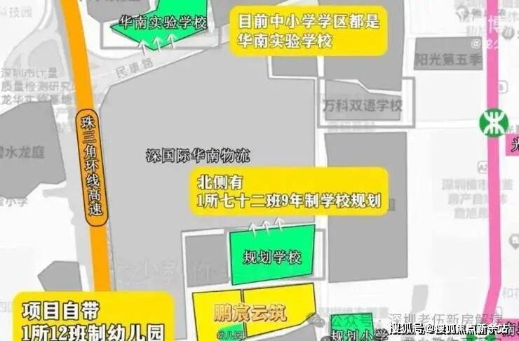 学校:项目北侧规划有广东省一级学校建设标准的72班九年一贯制学校,还有18班小学规划,近邻华南实验学校、万科双语学校。目前小学、初中学区都是华南实验学校。
