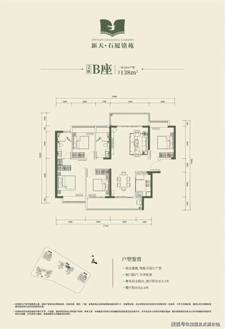 2栋B座一单元01、04户型、2栋B座二单元01户型:面积约为137-138㎡的4房2厅2卫