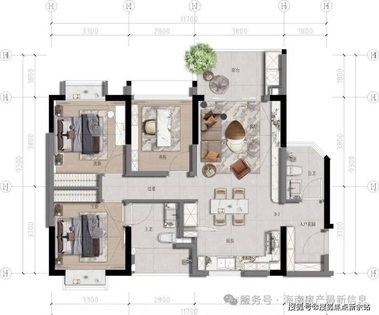 ◎无界生活:创新LDKS-B空间模式,客餐厨、书房、阳台联动打通
