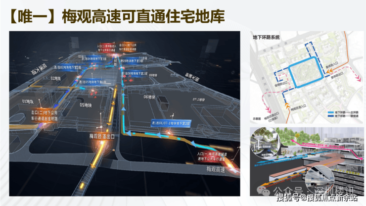 🚗 同级“前海地下路网”市级规划,首创梅观高速直通小区,经由地下环道畅连各地块车库,速抵福田中心区,高效出行;