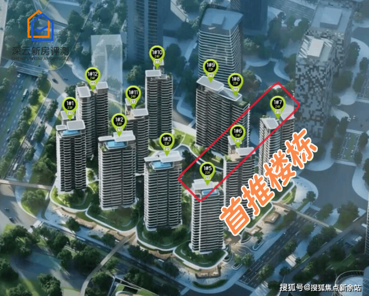 新规建筑,容积率仅3.4,总高不超过80米,户型使用率约100%。