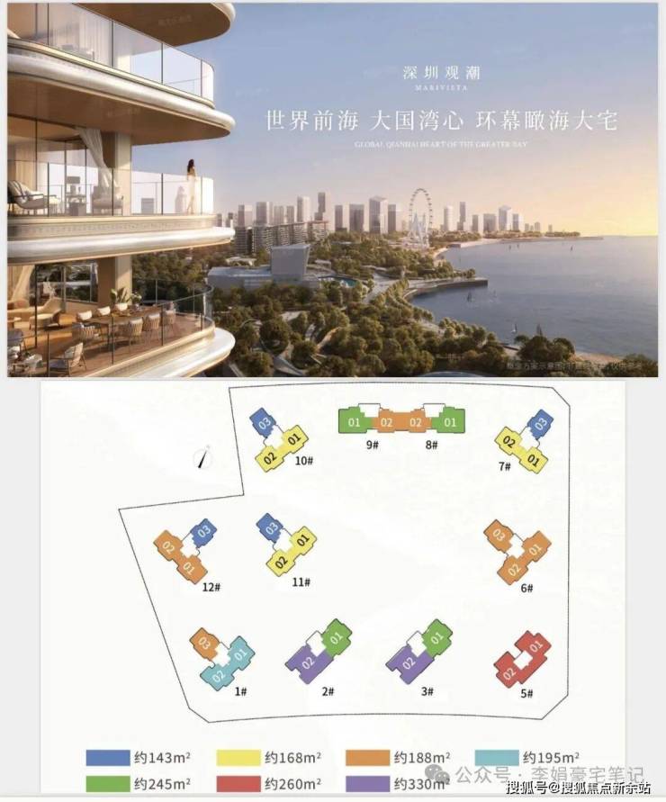 主力户型聚焦高阶人群,面积覆盖143-500㎡,涵盖143㎡舒适四房、330㎡全景舱大平层及500㎡顶奢户型,均采用高端精装标准交付,标配全屋智能系统、一线品牌厨卫,省去装修烦恼,实现拎包入住。项目遵循深圳2025年新规设计,空间使用率近100%,部分户型享一线无遮挡海景,270°环幕阳台尽揽滨海盛景,适配塔尖家庭、高阶精英等人群,也是观潮府备受青睐的核心原因。