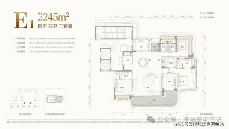 约260㎡(四房四卫三套间):项目“头牌”,全盘仅40套。采用创新的全景舱设计,拥有270°无遮挡环幕海景。专梯入户、十字前厅,仪式感与景观视野双双拉满。